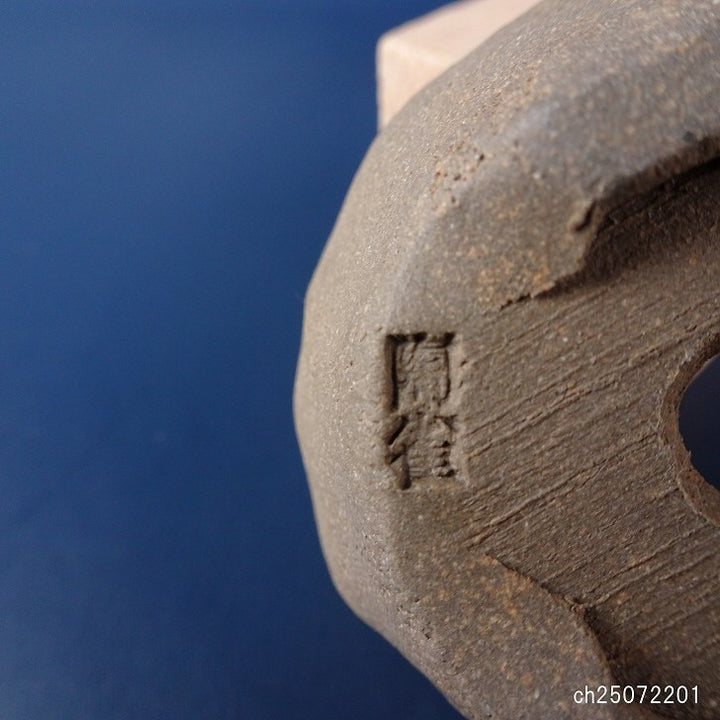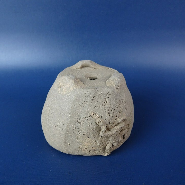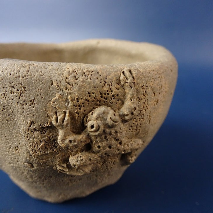 【中古】 盆栽鉢 陶雀 小鉢 長辺 約 6.7cm 丸鉢 蛙付 かえる カエル 泥物 現品 中古鉢 品名陶雀...