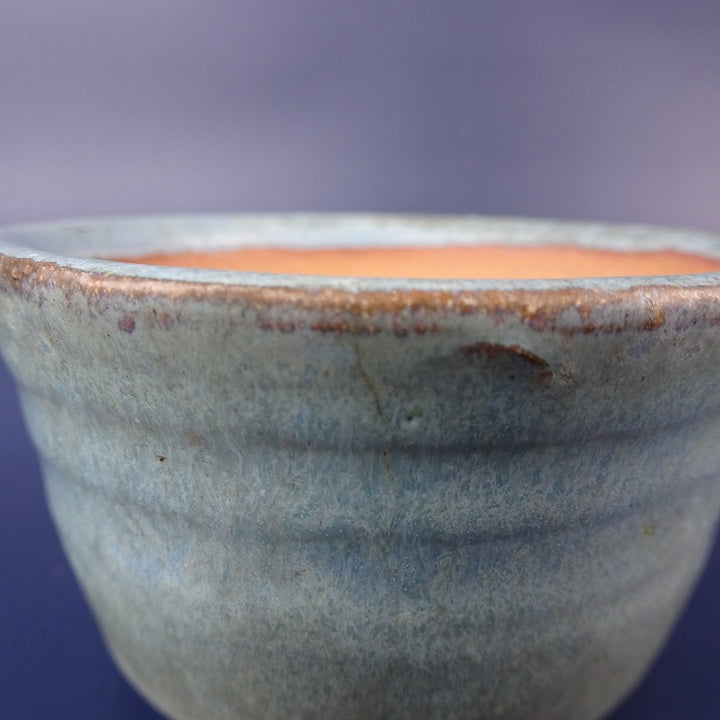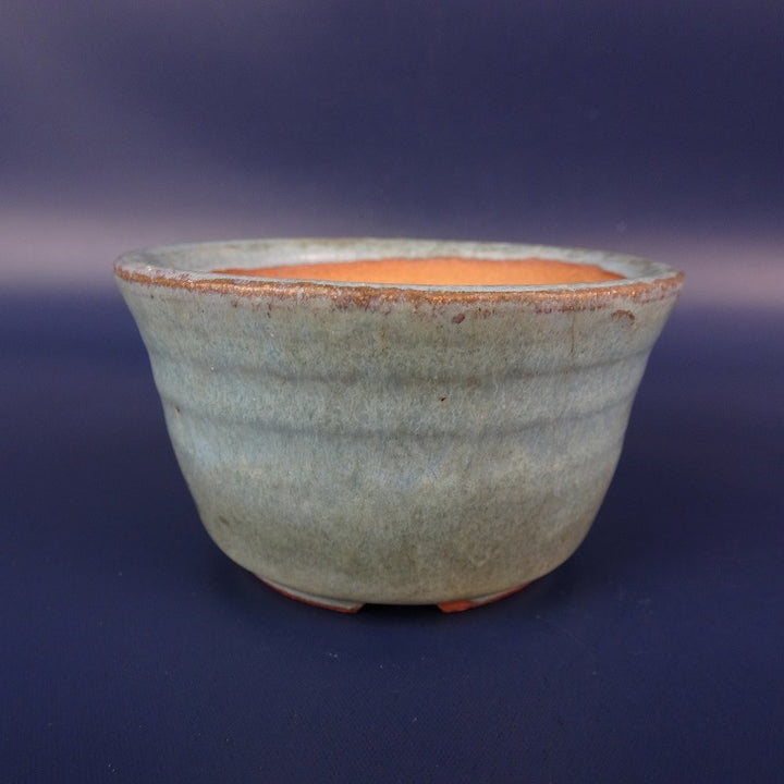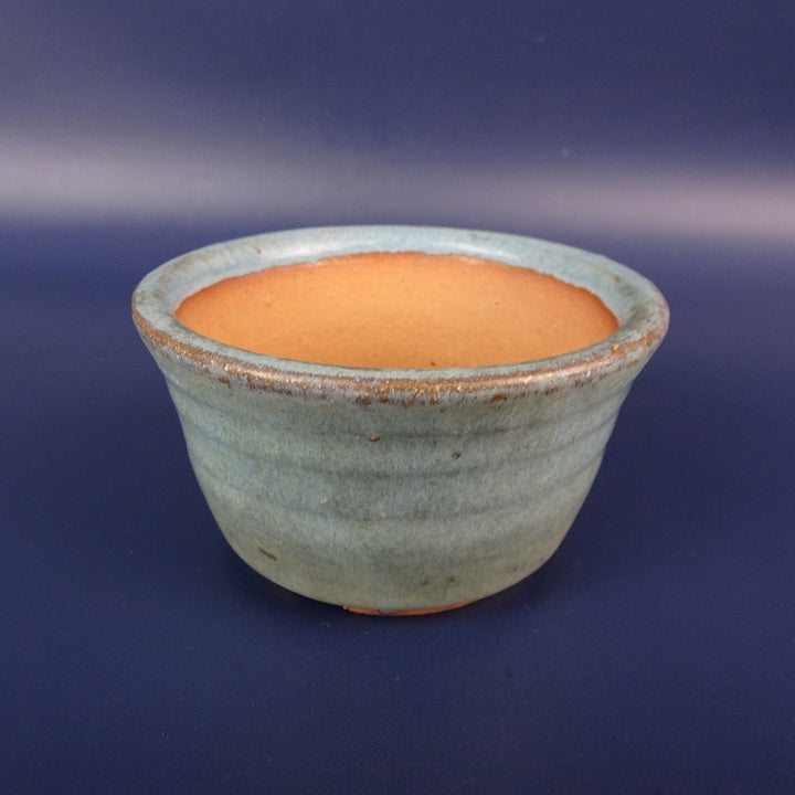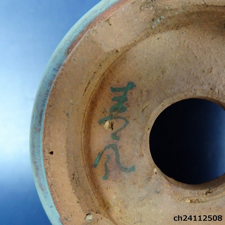 中古 盆栽鉢 青風 小鉢 長辺 約8cm 丸鉢 釉薬 中古鉢 q1198417709