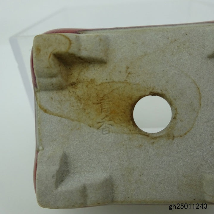 盆栽鉢 青香 小鉢 長辺 約 5.8cm 長方 鉢 縁付 釉薬 現品 中古鉢 品名青香...