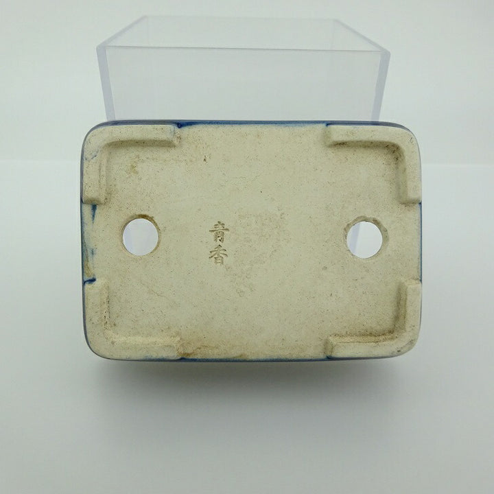 盆栽鉢 青香 小鉢 長辺 約 9.2cm 長方 鉢 釉薬 現品 中古鉢 品名青香...