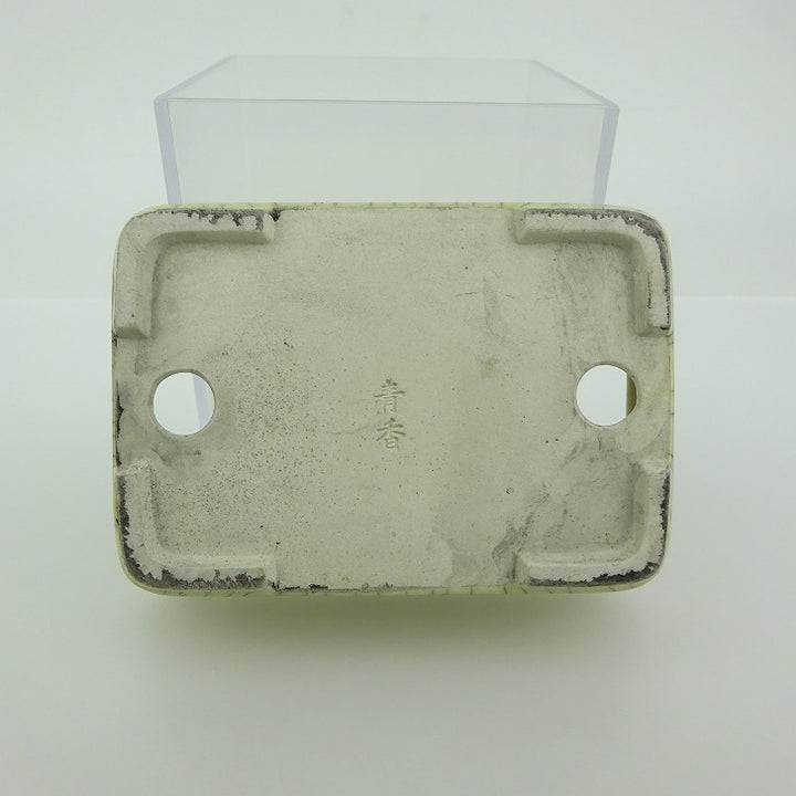 盆栽鉢 青香 小鉢 長辺 約 9.4cm 長方 鉢 貫入 釉薬 現品 中古鉢 品名青香...