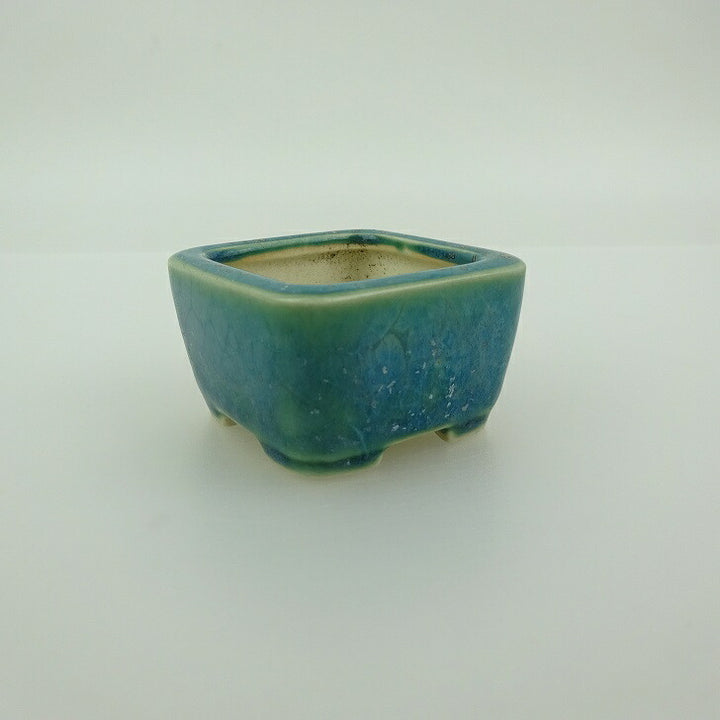 中古 盆栽鉢 青香 豆鉢 長辺 約4.3cm 正方鉢 釉薬 中古鉢 f1200178091