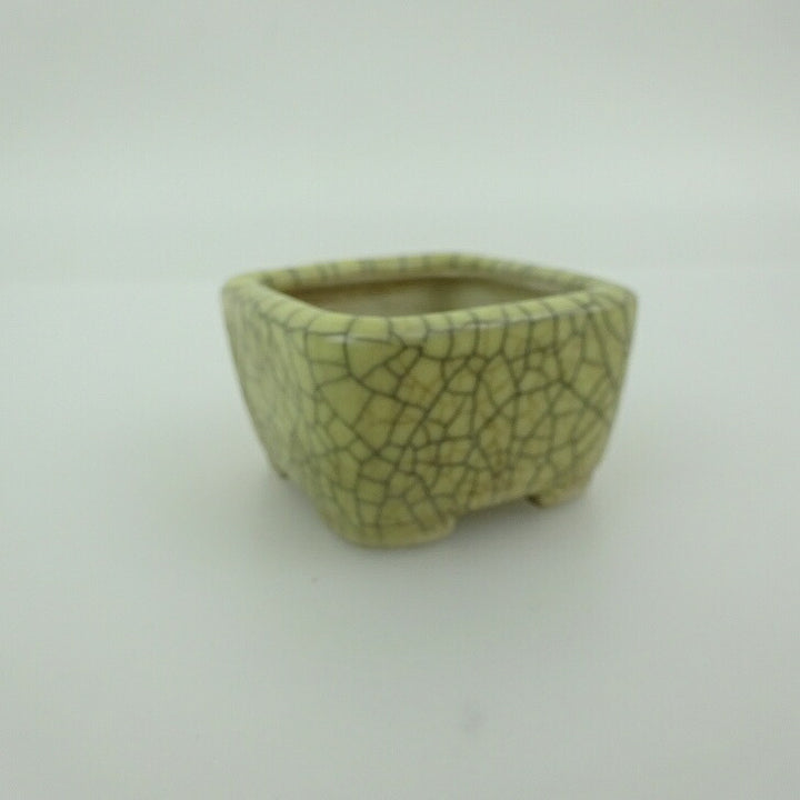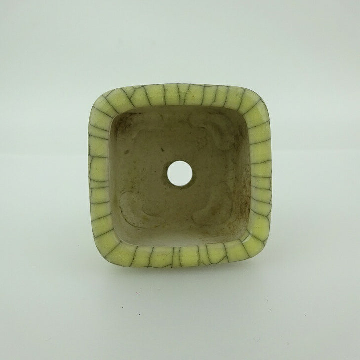 【中古】盆栽鉢 青香 豆鉢 長辺 約 4.5cm 正方 鉢 貫入 釉薬 現品 中古鉢 品名青香...