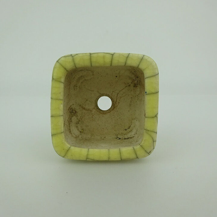 中古 盆栽鉢 青香 豆鉢 長辺 約4.6cm 正方鉢 貫入 釉薬 中古鉢 f1202692135