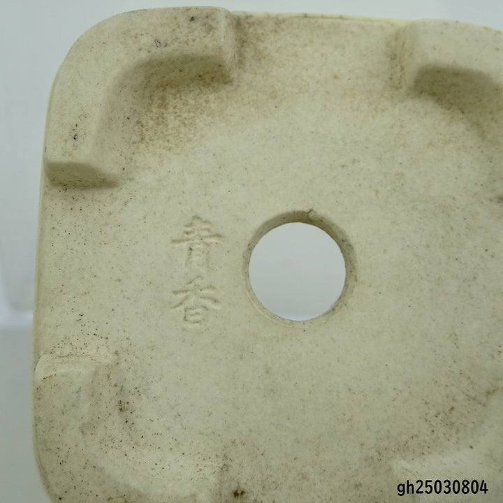 【中古】盆栽鉢 青香 豆鉢 長辺 約 4.6cm 正方 鉢 貫入 釉薬 現品 中古鉢 品名青香...