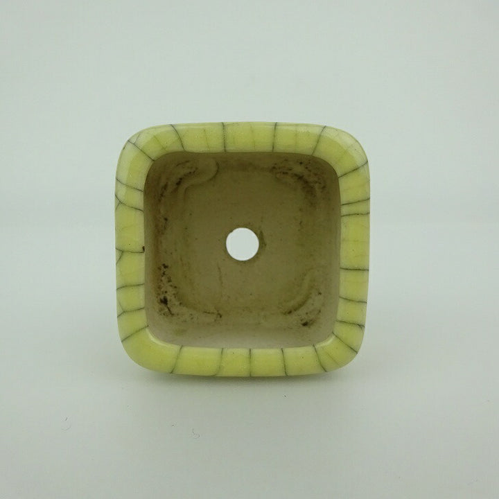 中古 盆栽鉢 青香 豆鉢 長辺 約4.6cm 正方鉢 貫入 釉薬 中古鉢 q1202696066