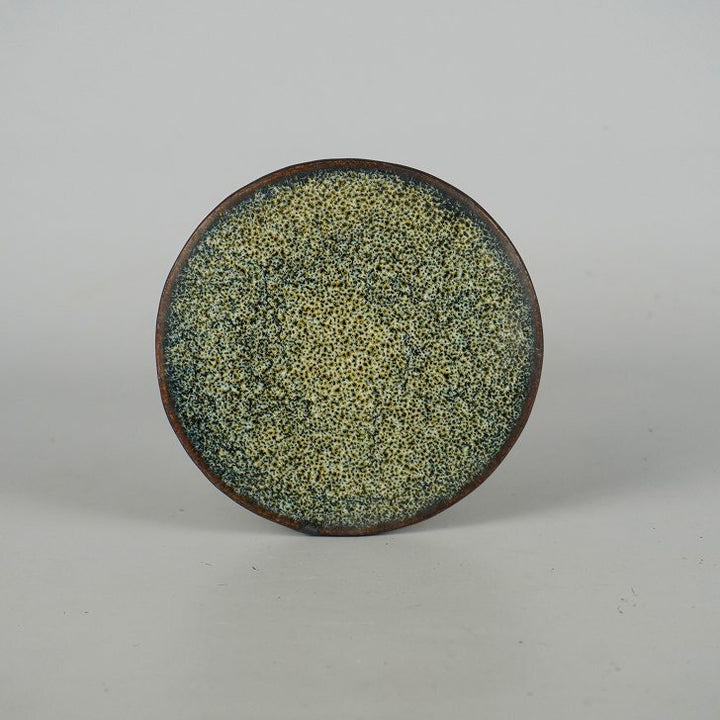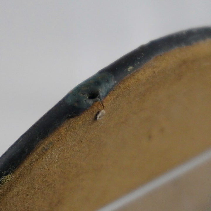 陶板 花台 小石原 長辺 約10.3cm 丸型 飾台 置物台 花飾 釉薬 陶製 盆栽台 現品 中古 品名小石原 陶板 (花台・飾卓)...