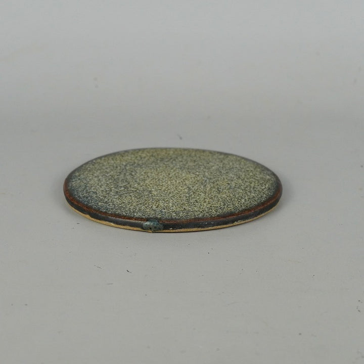 中古 陶板 花台 小石原 長辺 約10.3cm 丸型 飾台 置物台 花飾 釉薬 陶製 盆栽台 中古 u1198429758