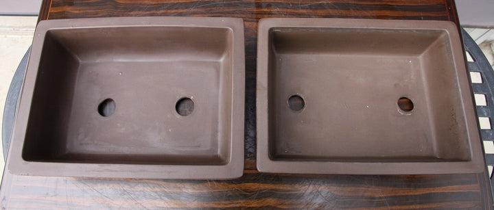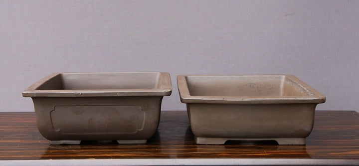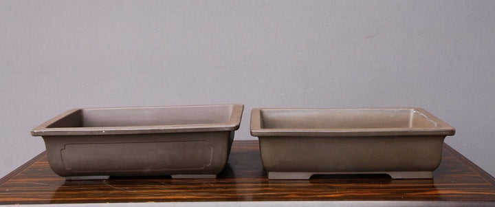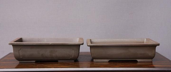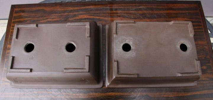 とこなめ和鉢2組 【 外縁長方 】 説 明11号の常滑鉢2個セットです。落ちつきのある色合いですので松柏に良く似合い、当園でも良く使用しています。中古品としての出品ですので、価格はお買い求め安く販売させて頂きます。ニュウはありませんが、小さなホツはある場合があります。色、形の良く似た同等品になります。他にも違うサイズの鉢もあります。...