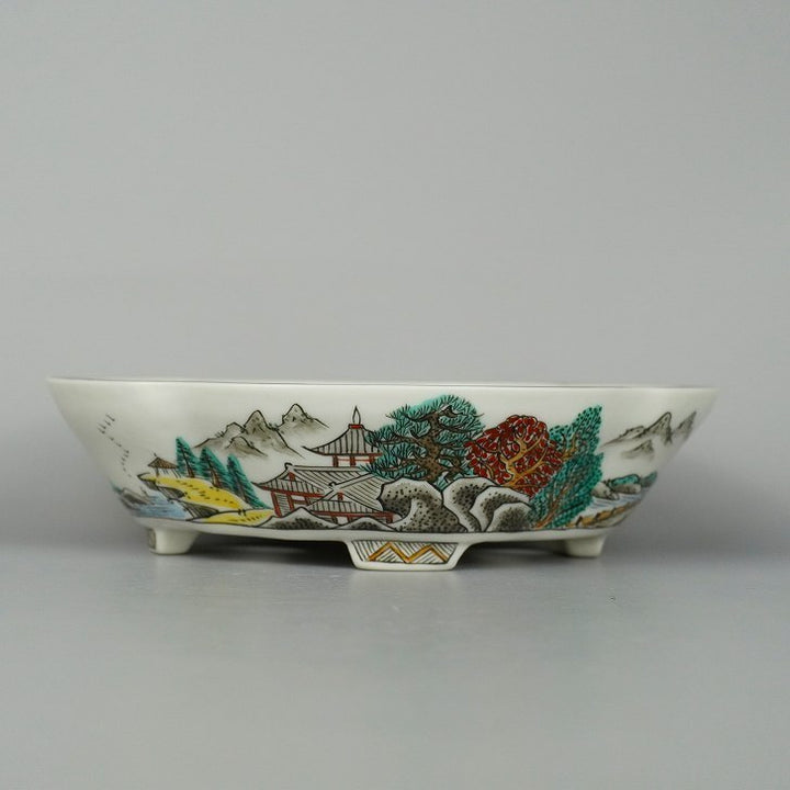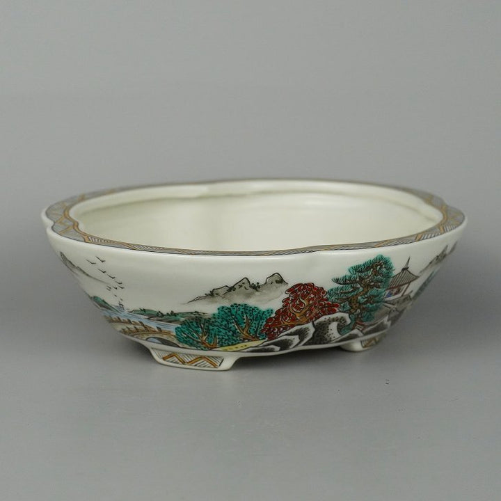 月香 箱付 五彩 山水画 木瓜鉢 観賞用 盆栽鉢 新品 e1198413221