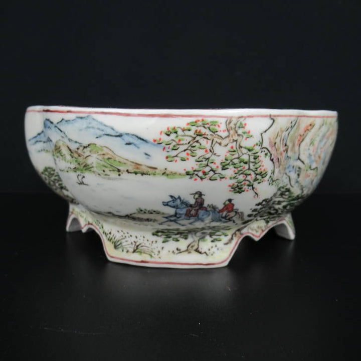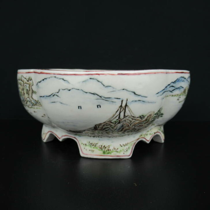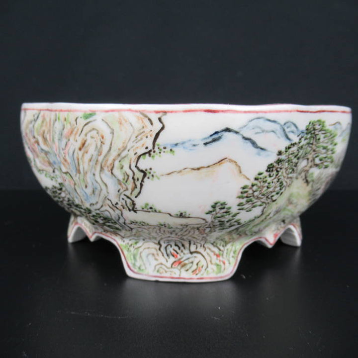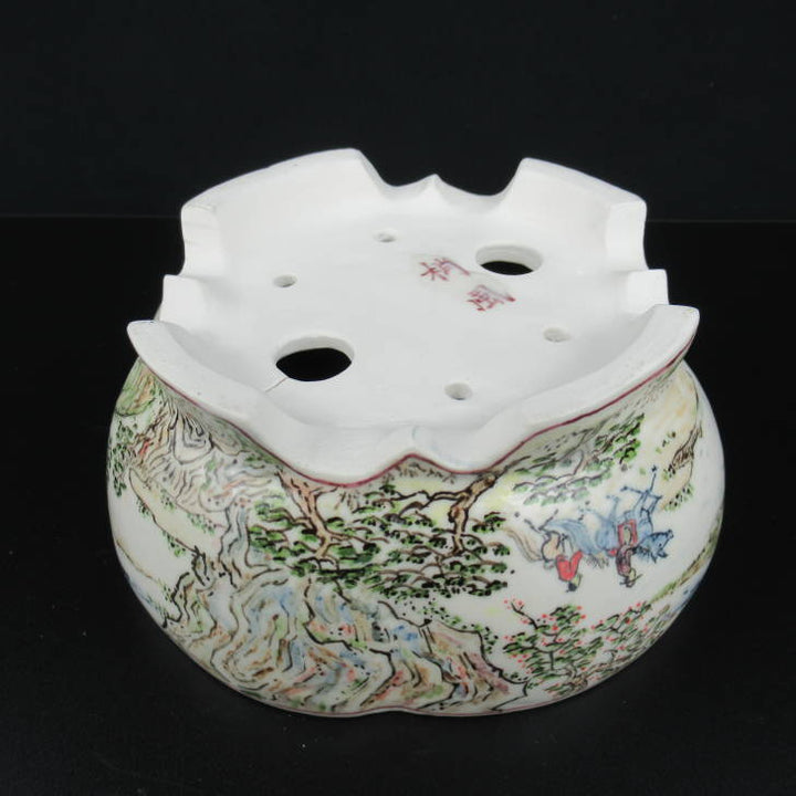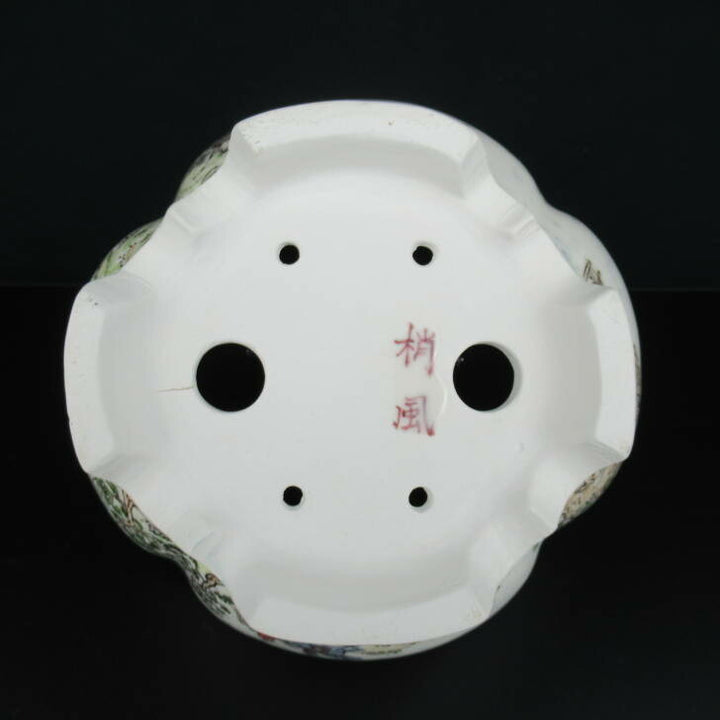梢風 盆栽鉢 木瓜 色絵 山水人物図 新品 c1198410314
