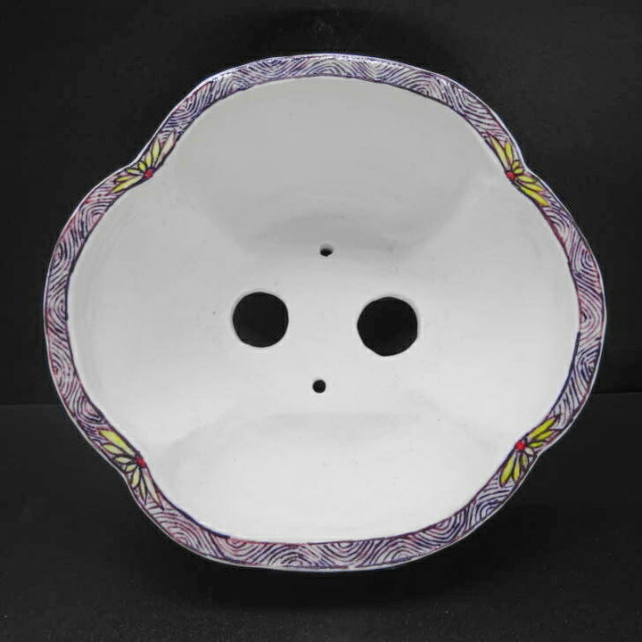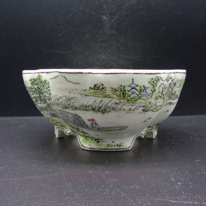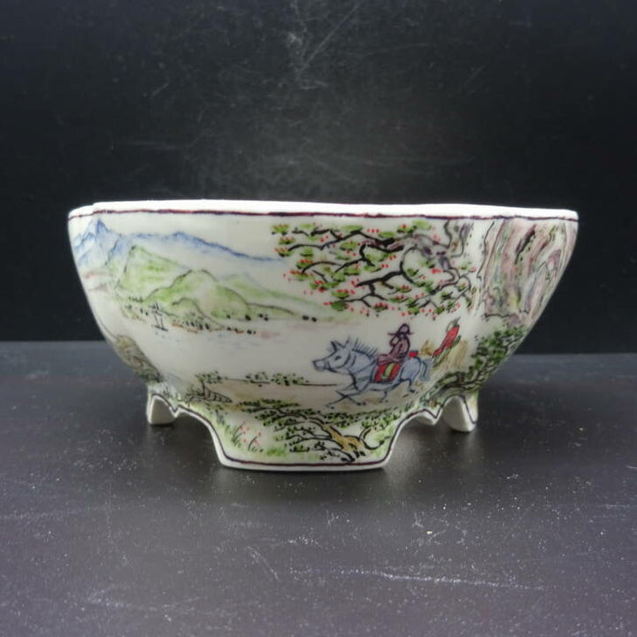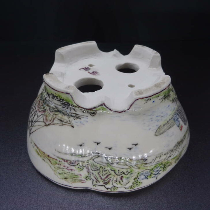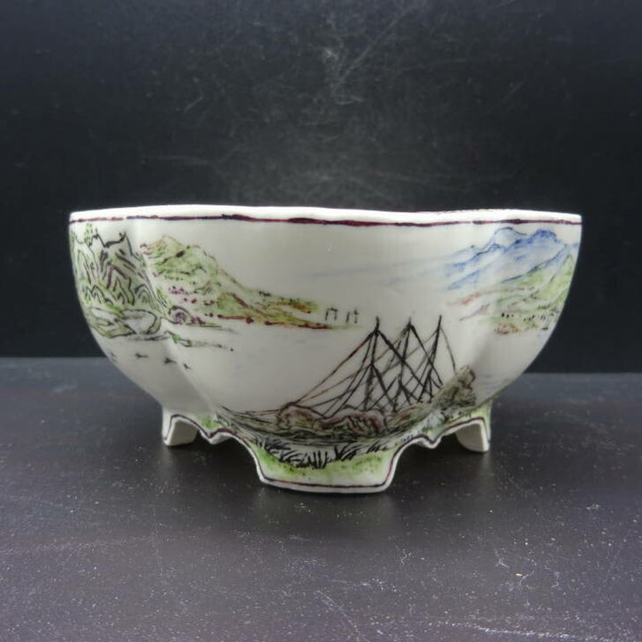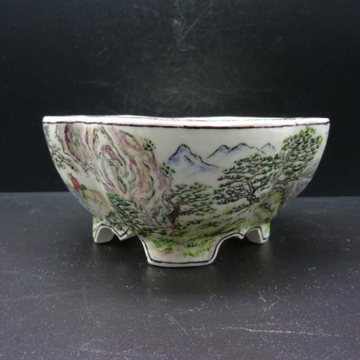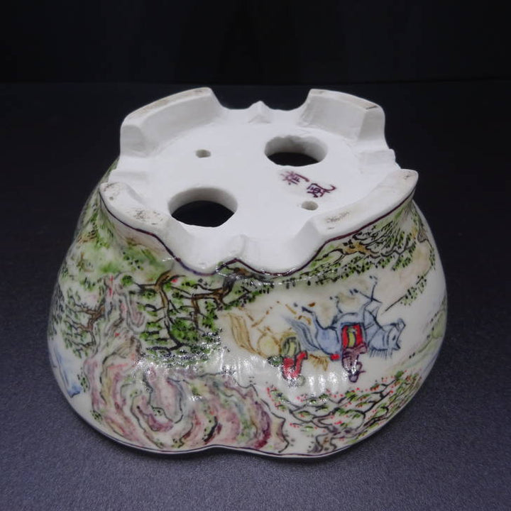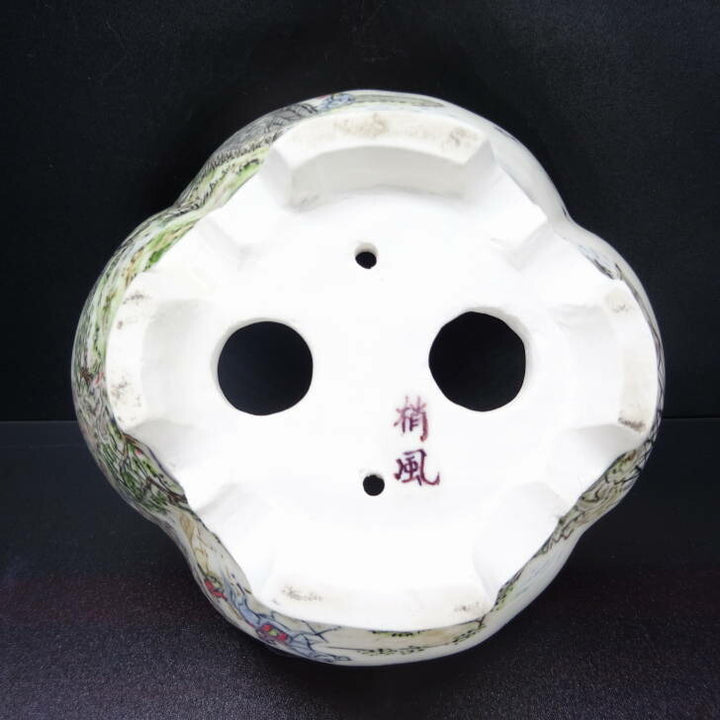 梢風 盆栽鉢 木瓜 色絵 山水人物図 新品 p1198415983