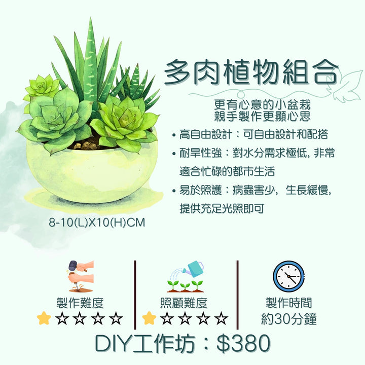 請注意:課程費用已包含預設植物,如需配置使用預設以外的植物或其他,則需另外補差價以原價95折購買。