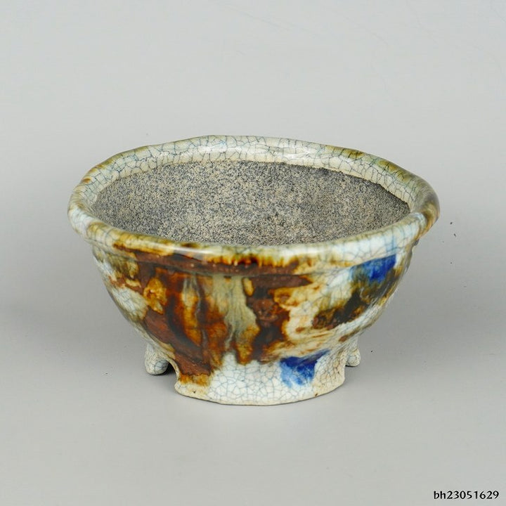 盆栽鉢 てるみ 越前文山 鯖江園芸 小型 長辺 約13cm 丸鉢 釉薬 観賞用 現品 新品 てるみ・越前文山 越前文山窯 てるみ作(文山氏の奥様) 越前文山 1973年に鯖江園芸を開園する。 地元に伝わる越前焼に則って独自の作風を確立し、手びねりによる焼締の他、辰砂などの釉薬や象嵌を施したものがある。...