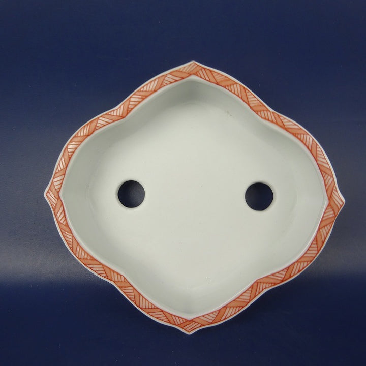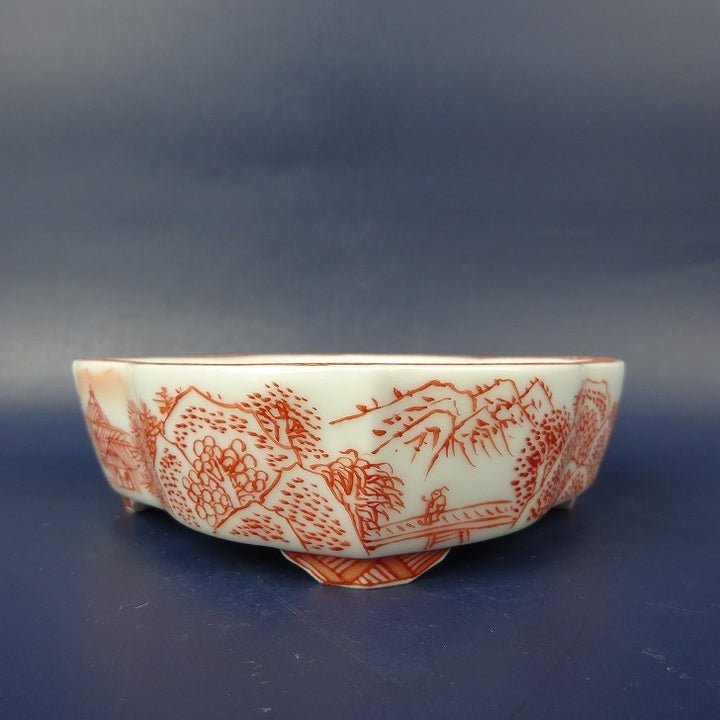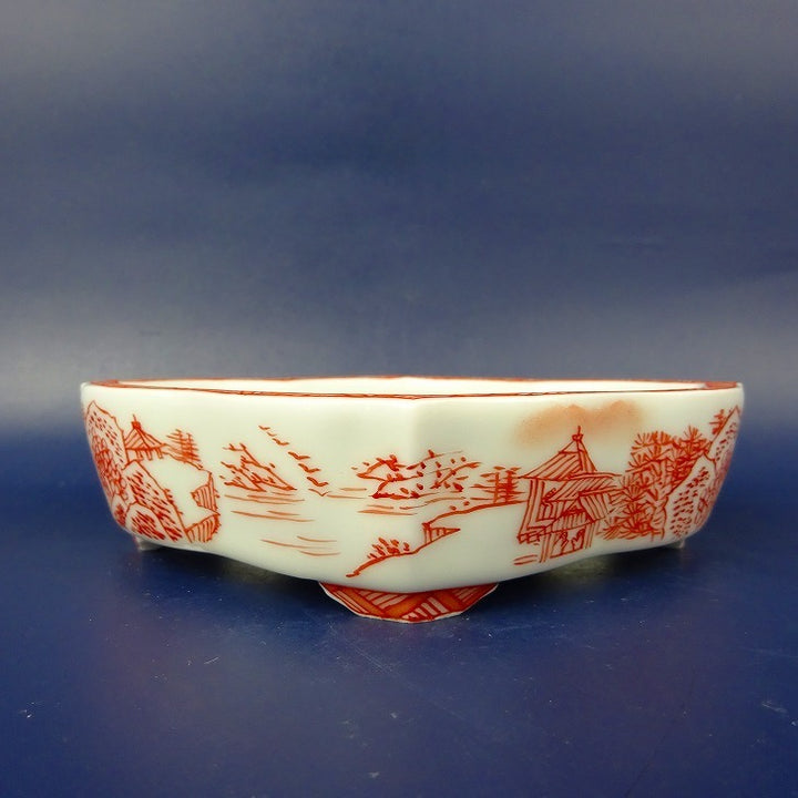 盆栽鉢 は二わ オリジナル鉢 小型 長辺 約13.5cm 剣木瓜鉢 赤絵 風景画 観賞用 新品 l1198404144