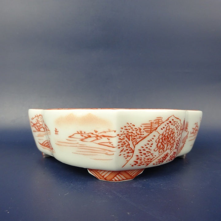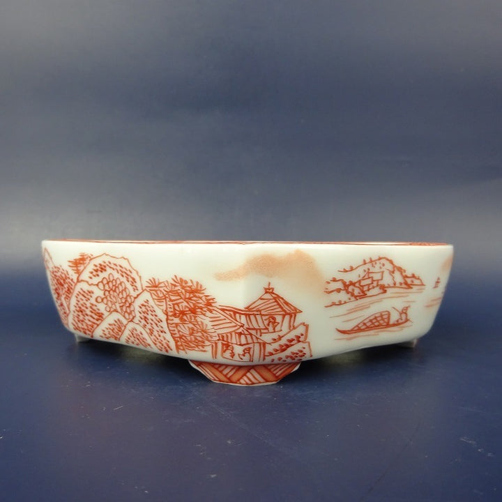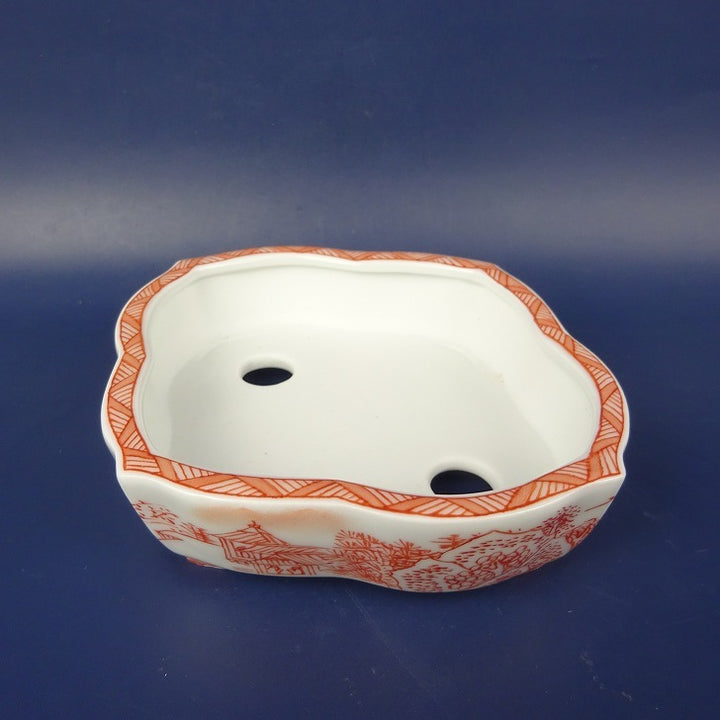 盆栽鉢 は二わ オリジナル鉢 小型 長辺 約13.5cm 剣木瓜鉢 赤絵 風景画 観賞用 現品 新品 は二わオリジナル鉢 職人さんが丁寧に仕上げた、は二わのオリジナル商品です。...