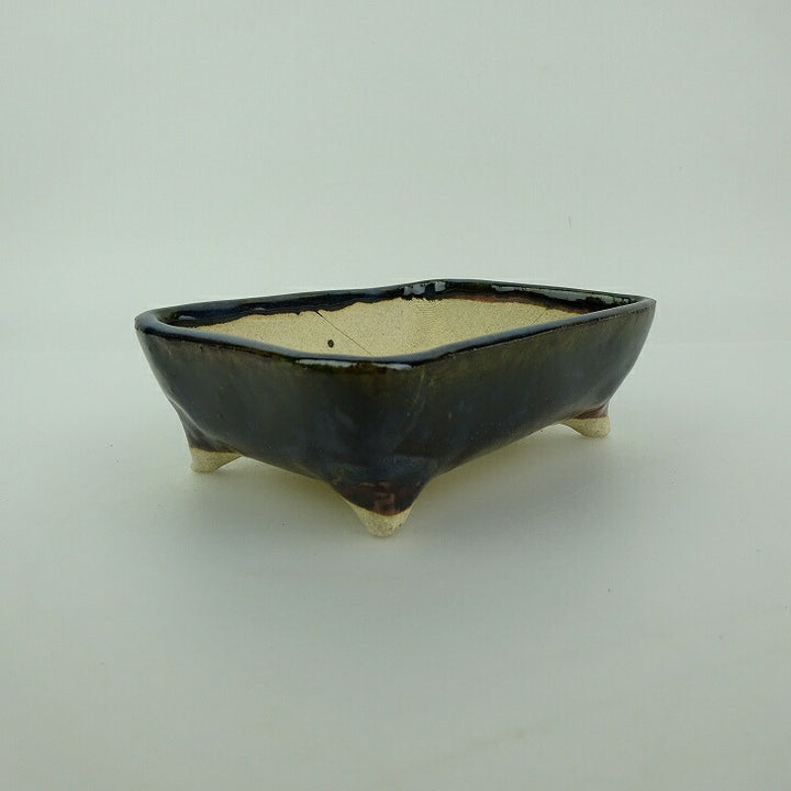 盆栽鉢 ゆうき祥石 小型 長辺 約 11.3cm 長方鉢 釉薬 新品 u1202710866