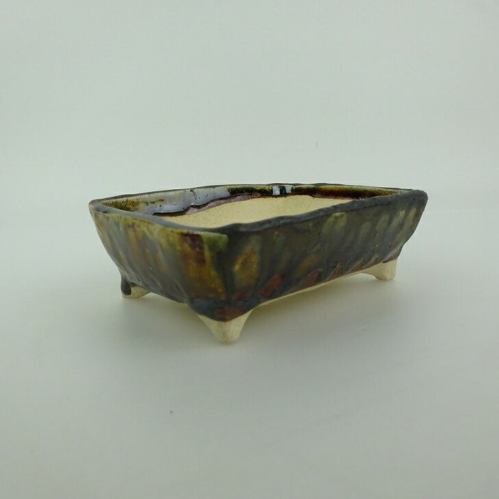 盆栽鉢 ゆうき祥石 小型 長辺 約 11.8cm 長方鉢 釉薬 新品 k1202083990
