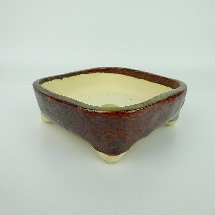 盆栽鉢 ゆうき祥石 小型 長辺 約 13cm 正方鉢 釉薬 新品 m1198407276