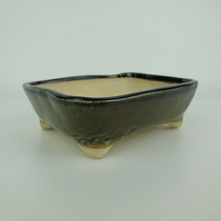 盆栽鉢 ゆうき祥石 小型 長辺 約 16.3cm 長方鉢 釉薬 観賞用 新品 t1198409622