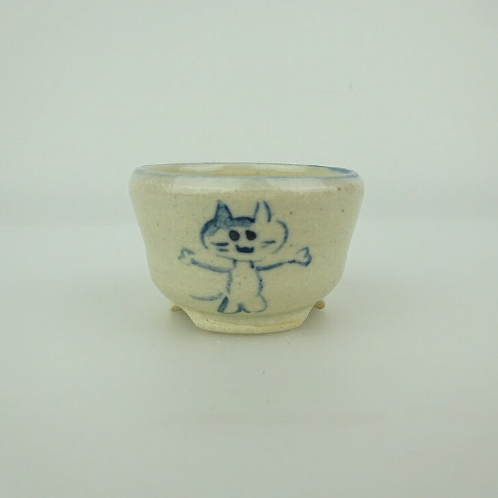 盆栽鉢 ゆうき祥石 小鉢 長辺 約 4.7cm 丸 鉢 絵鉢 猫 ネコ ねこ 釉薬 観賞用 現品 新品 品名ゆうき祥石...
