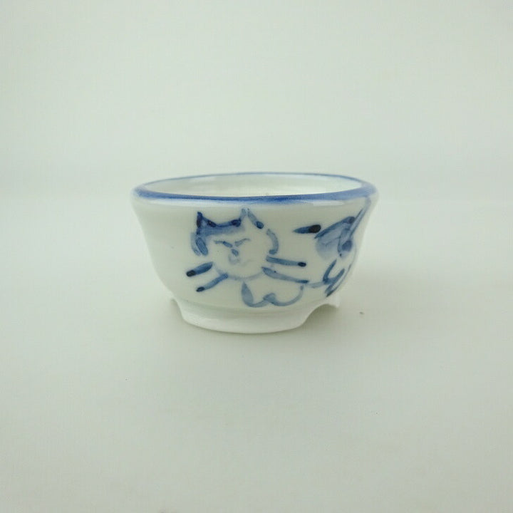 盆栽鉢 ゆうき祥石 小鉢 長辺 約 5.3cm 丸鉢 絵鉢 猫 ネコ ねこ 落款なし 足跡 肉球 釉薬 鑑賞用 観賞用 新品 k1200291109