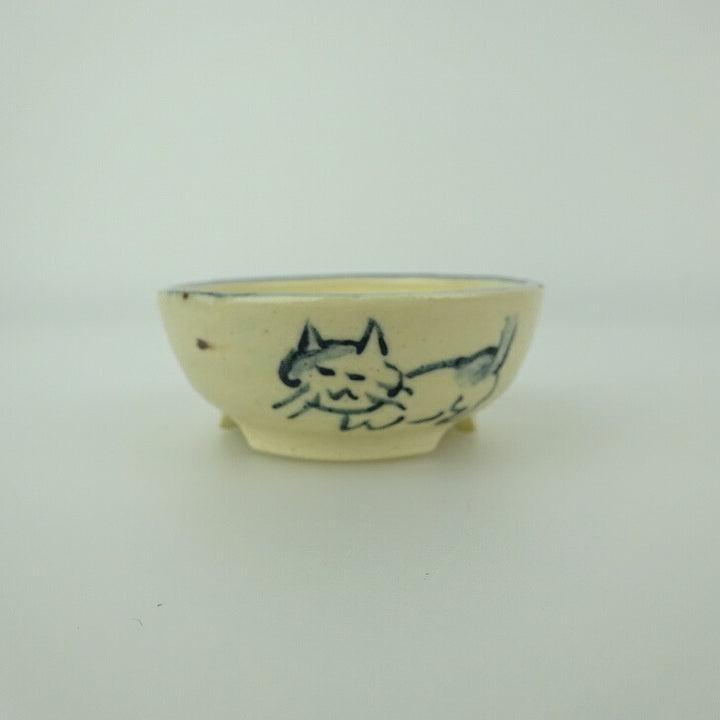 盆栽鉢 ゆうき祥石 小鉢 長辺 約 5.3cm 丸鉢 絵鉢 猫 ネコ ねこ 釉薬 観賞用 新品 c1199245971