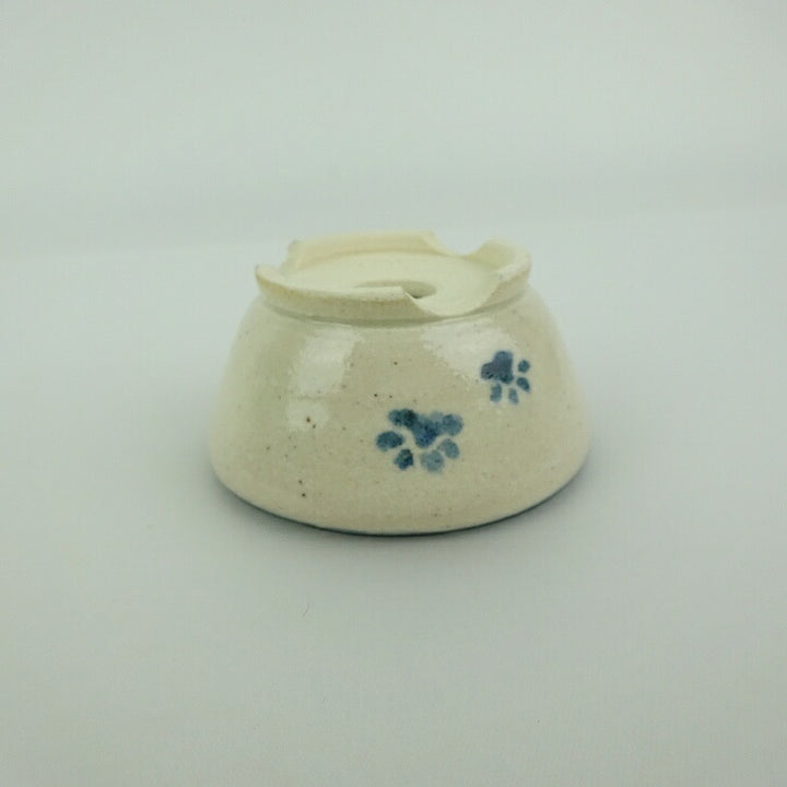盆栽鉢 ゆうき祥石 小鉢 長辺 約 5.8cm 丸鉢 絵鉢 猫 ネコ ねこ 足跡 肉球 釉薬 観賞用 新品 g1199255921