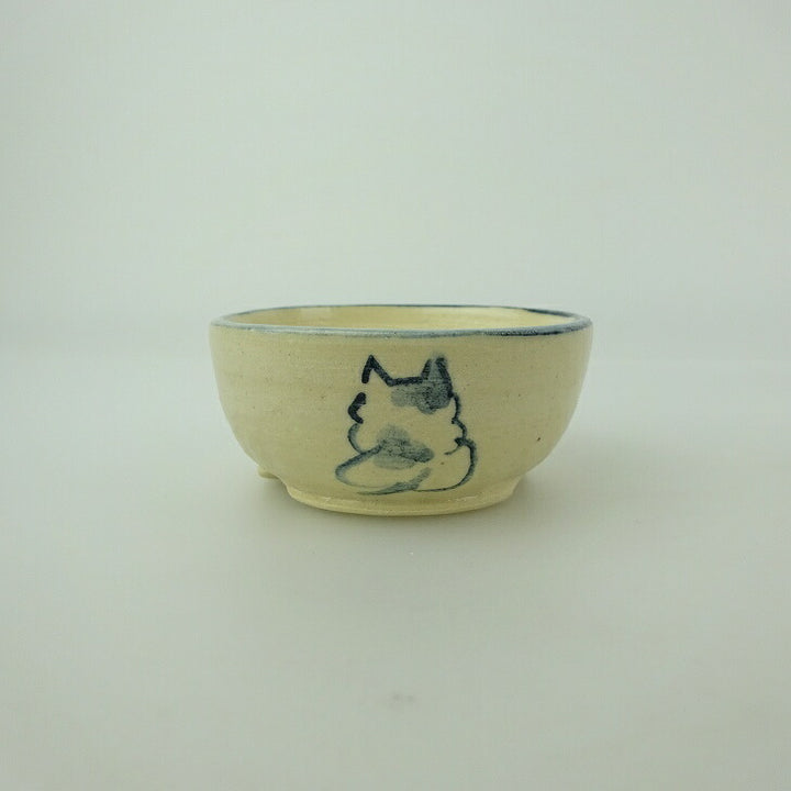 盆栽鉢 ゆうき祥石 小鉢 長辺 約 6.5cm 丸鉢 絵鉢 落款なし 猫 ネコ ねこ 足跡 肉球 釉薬 鑑賞用 観賞用 新品 l1202254651
