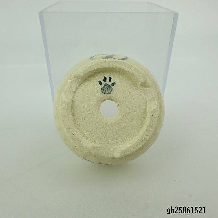 盆栽鉢 ゆうき祥石 小鉢 長辺 約 6.5cm 丸 鉢 絵鉢 落款なし 猫 ネコ ねこ 足跡 釉薬 観賞用 現品 新品 品名ゆうき祥石...