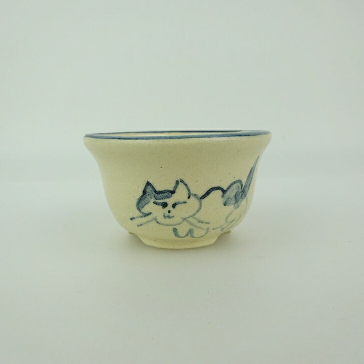 盆栽鉢 ゆうき祥石 小鉢 長辺 約 6cm 丸 鉢 絵鉢 猫 ネコ ねこ 釉薬 観賞用 現品 新品 品名ゆうき祥石...