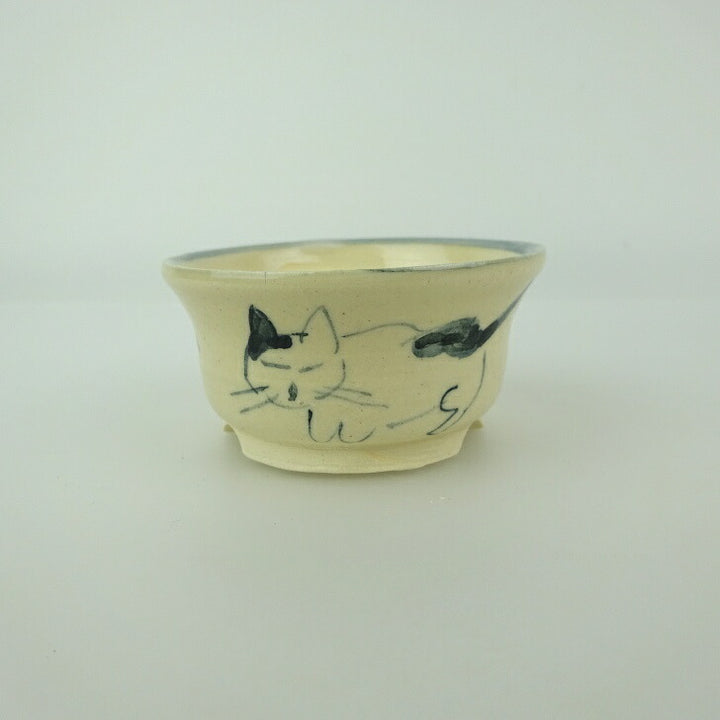 盆栽鉢 ゆうき祥石 小鉢 長辺 約 6cm 丸 鉢 絵鉢 猫 ネコ ねこ 釉薬 観賞用 現品 新品 品名ゆうき祥石...