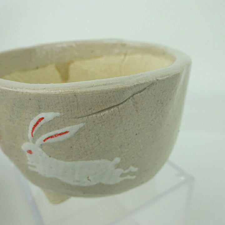 盆栽鉢 ゆうき祥石 小鉢 長辺 約 7.2cm 丸鉢 プリント 桜 サクラ さくら うさぎ 釉薬 観賞用 現品 新品 品名ゆうき祥石...