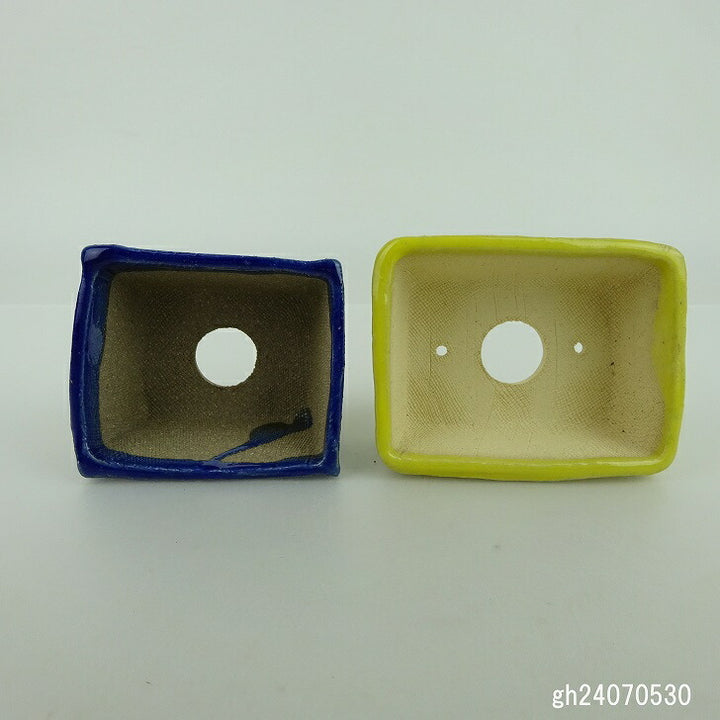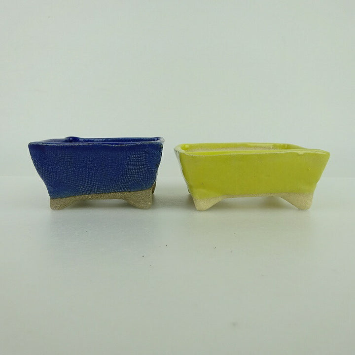 盆栽鉢 ゆうき祥石 2点セット 小鉢 長辺 約7.5cm 長方鉢 青 黄 釉薬 新品 w1198406937
