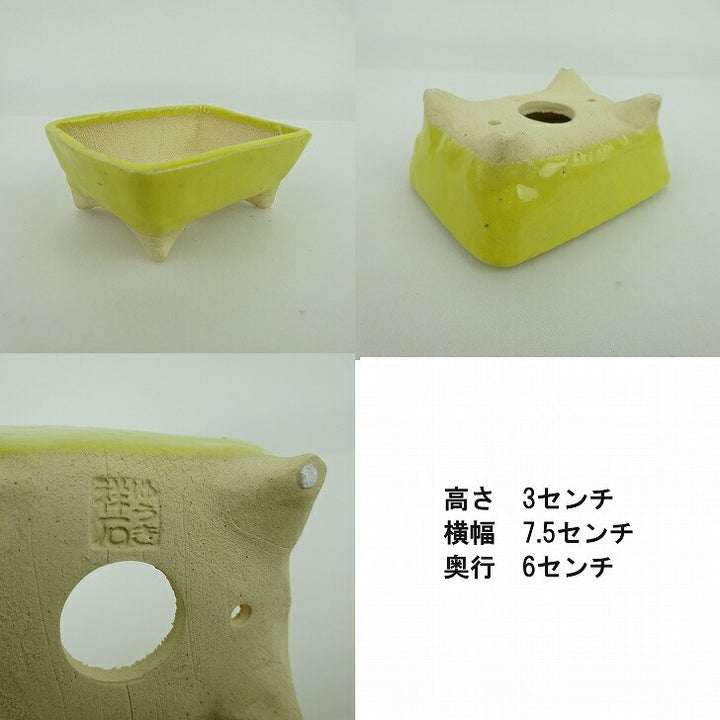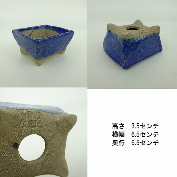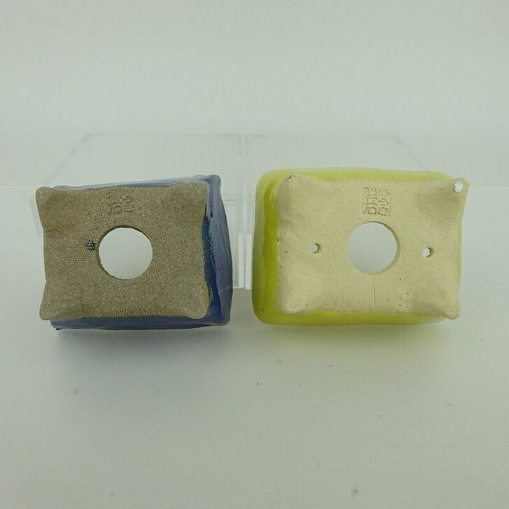 盆栽鉢 ゆうき祥石 2 点セット 小鉢 長辺 約 7.5cm 長方鉢 青 黄 釉薬 現品 新品 品名ゆうき祥石 2点セット...
