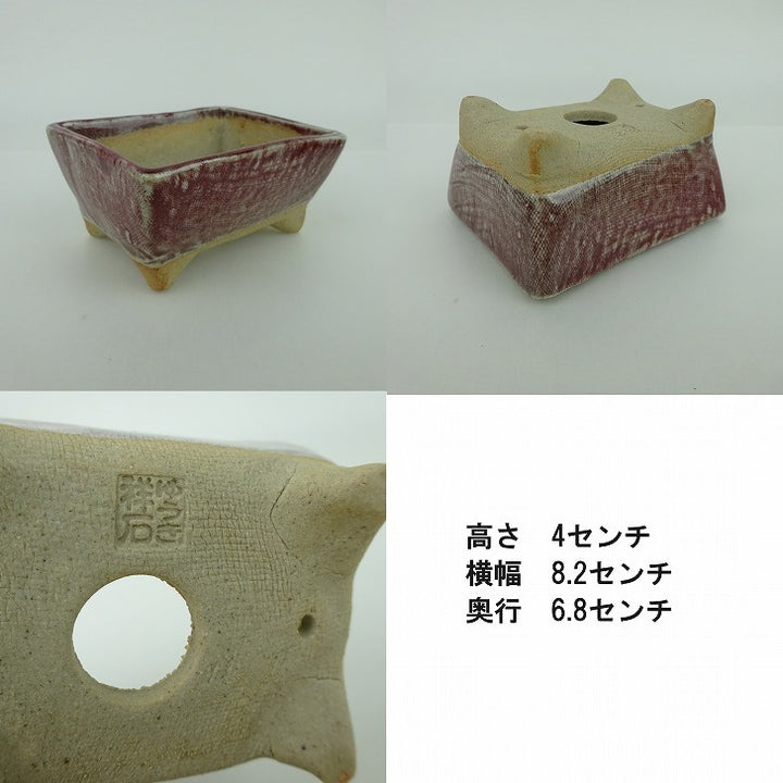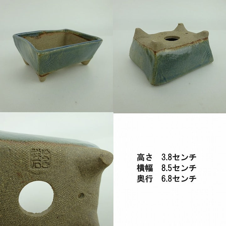 盆栽鉢 ゆうき祥石 2 点セット 小鉢 長辺 約 8.5cm 長方鉢 赤 水色 釉薬 現品 新品 品名ゆうき祥石 2点セット...