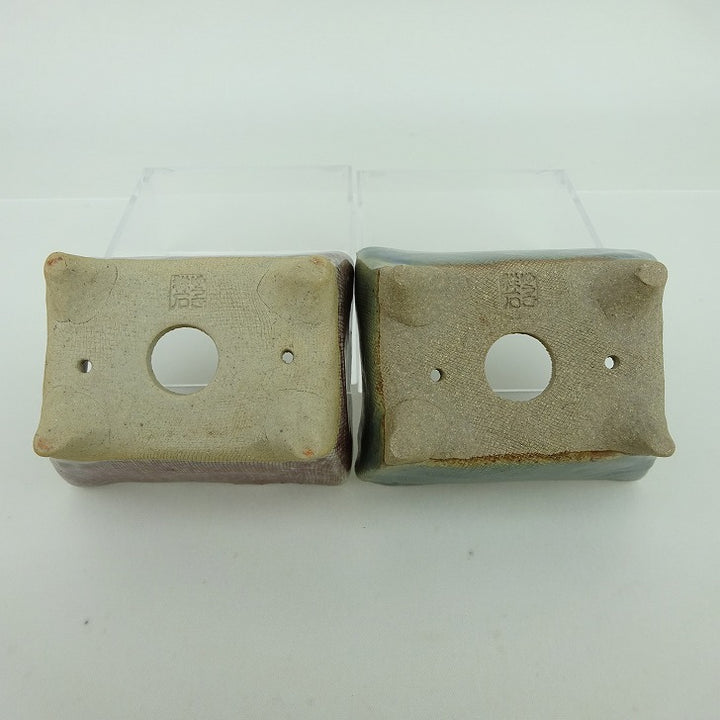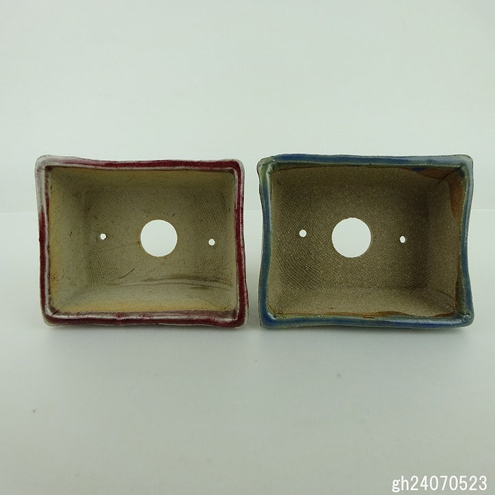 盆栽鉢 ゆうき祥石 2点セット 小鉢 長辺 約8.5cm 長方鉢 赤 水色 釉薬 新品 k1198408235