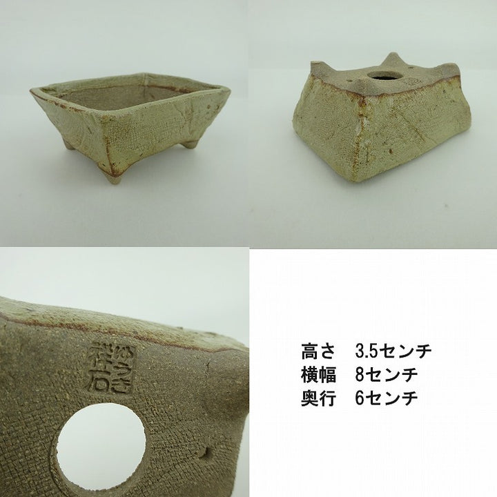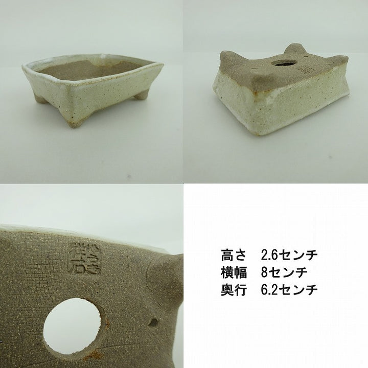 盆栽鉢 ゆうき祥石 2点セット 小鉢 長辺 約8cm 長方鉢 ベージュ 白 釉薬 現品 新品 商品ゆうき祥石 2点セット...