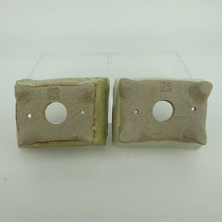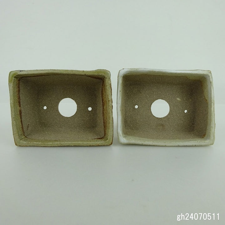盆栽鉢 ゆうき祥石 2点セット 小鉢 長辺 約8cm 長方鉢 ベージュ 白 釉薬 新品 1198407358