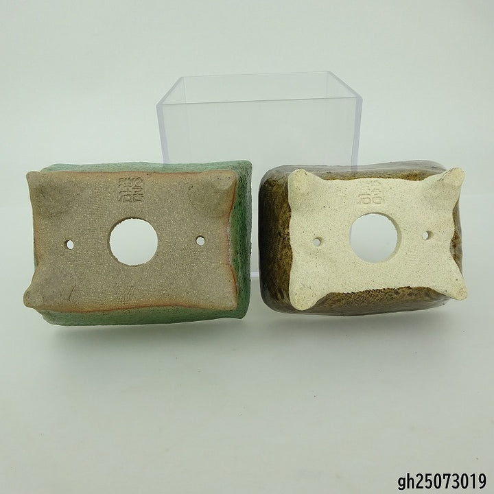 盆栽鉢 ゆうき祥石 2点セット 小鉢 長辺 約8cm 長方鉢 茶 緑 釉薬 新品 u1202707282