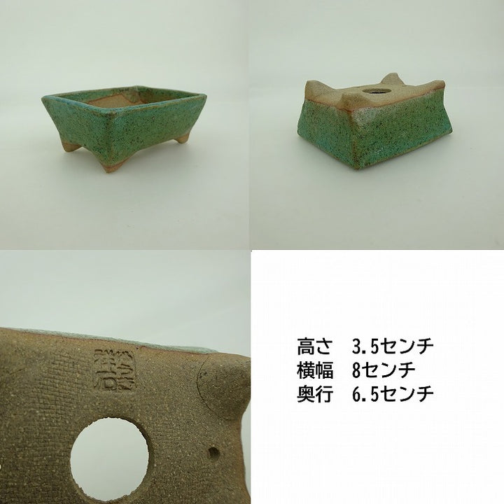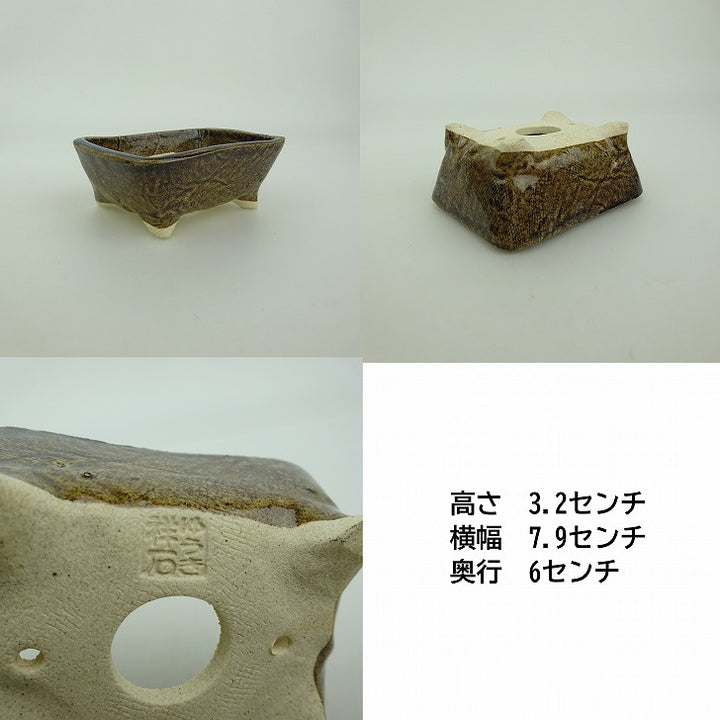 盆栽鉢 ゆうき祥石 2 点セット 小鉢 長辺 約 8cm 長方 鉢 茶 緑 釉薬 現品 新品 品名ゆうき祥石 2点セット...