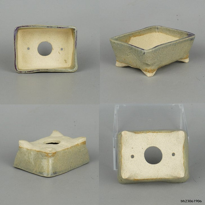 盆栽鉢 ゆうき祥石 3点セット 小鉢 長辺 約7.4cm 長方鉢 釉薬 新品 m1198408177