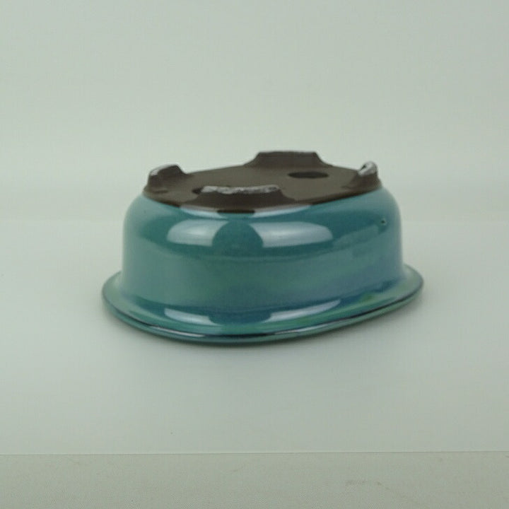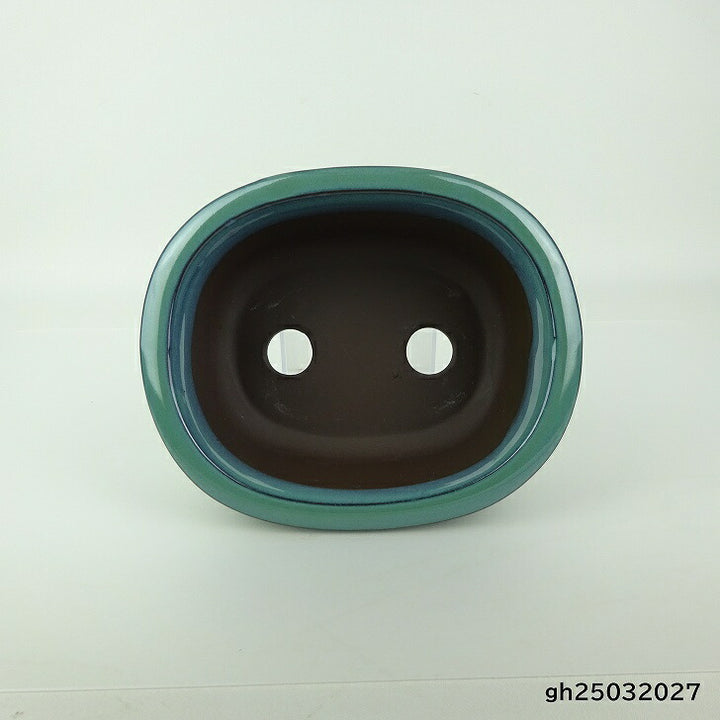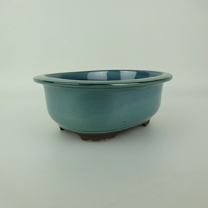 盆栽鉢 万古焼 萬古 小型 長辺 約18cm 楕円鉢 縁付 釉薬 新品 数量物 e1198413469