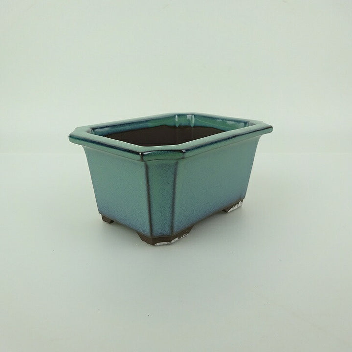 盆栽鉢 万古焼 萬古 森三 小型 長辺 約11cm 長方鉢 隅入 釉薬 新品 数量物 c1198407392