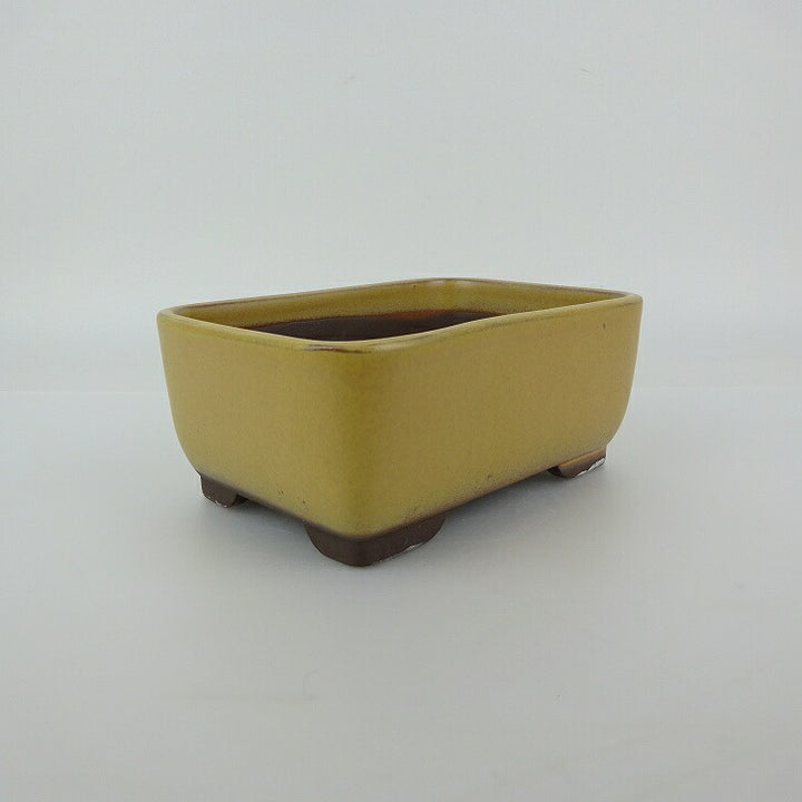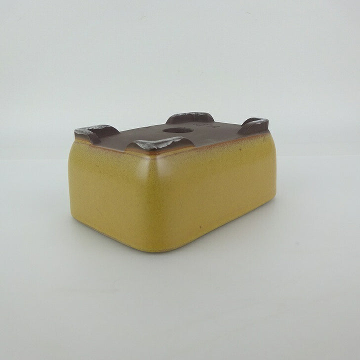 盆栽鉢 万古焼 萬古 森三 小型 長辺 約13.8cm 長方鉢 撫角 釉薬 新品 数量物 k1198409477