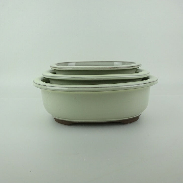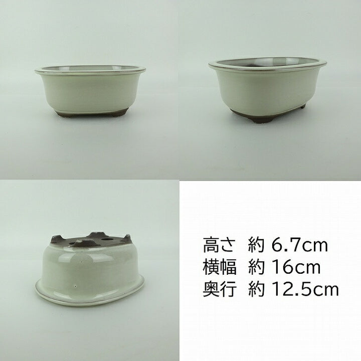 盆栽鉢 万古焼 萬古 3点セット 小型 中型 長辺 約21cm 楕円鉢 縁付 釉薬 新品 数量物 c1198412655