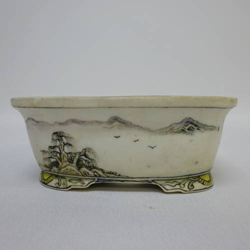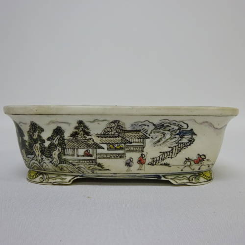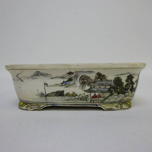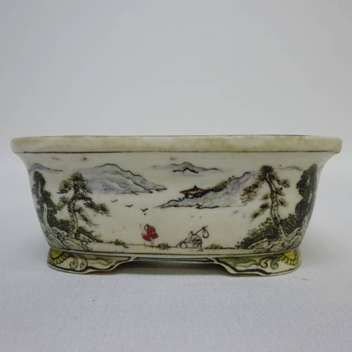 盆栽鉢 上州勝山 箱付き 山水画 長方鉢 u1198426883