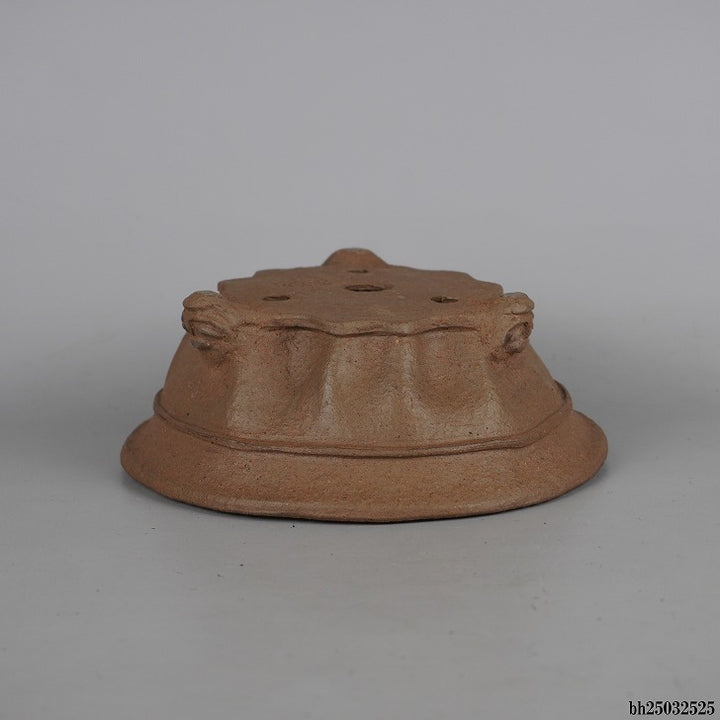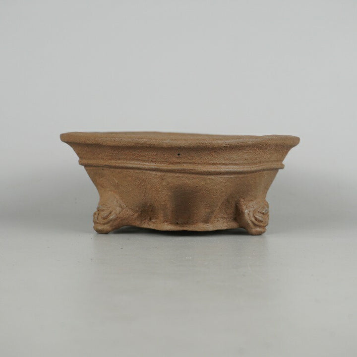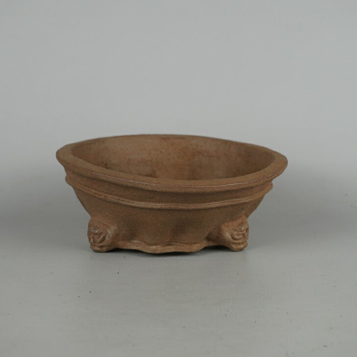 盆栽鉢 仙舟 小型 長辺 約 17.5cm 丸鉢 外縁 中帯 鬼面足 泥物 新品 q1198414423