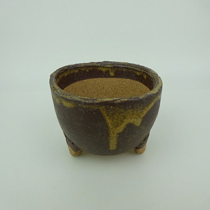 盆栽鉢 信楽焼 小型 長辺 約10.8cm 丸鉢 信楽 楽風 釉薬 観賞用 新品 s1198417411