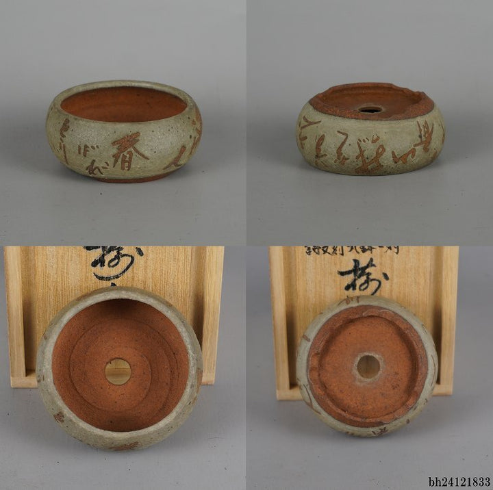 盆栽鉢 光峰 2点セット 小鉢 長辺 約7.8cm 丸鉢 詩 釉薬 共箱 共布 観賞用 現品 品名光峰 2点セット (共箱・共布)...